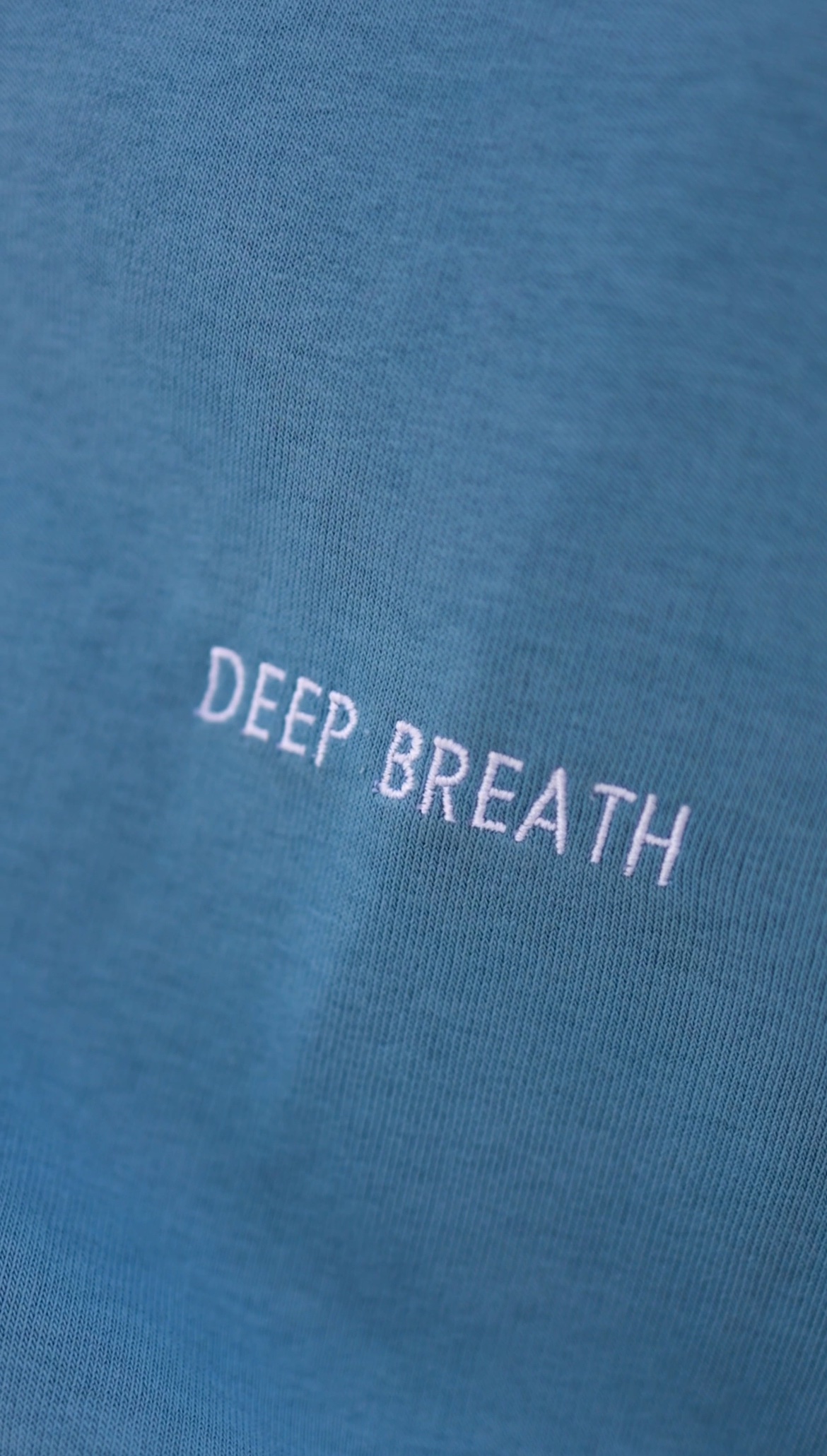Na piersi subtelny haft DEEP breath — przypomnienie, by oddychać głębiej i łagodniej.