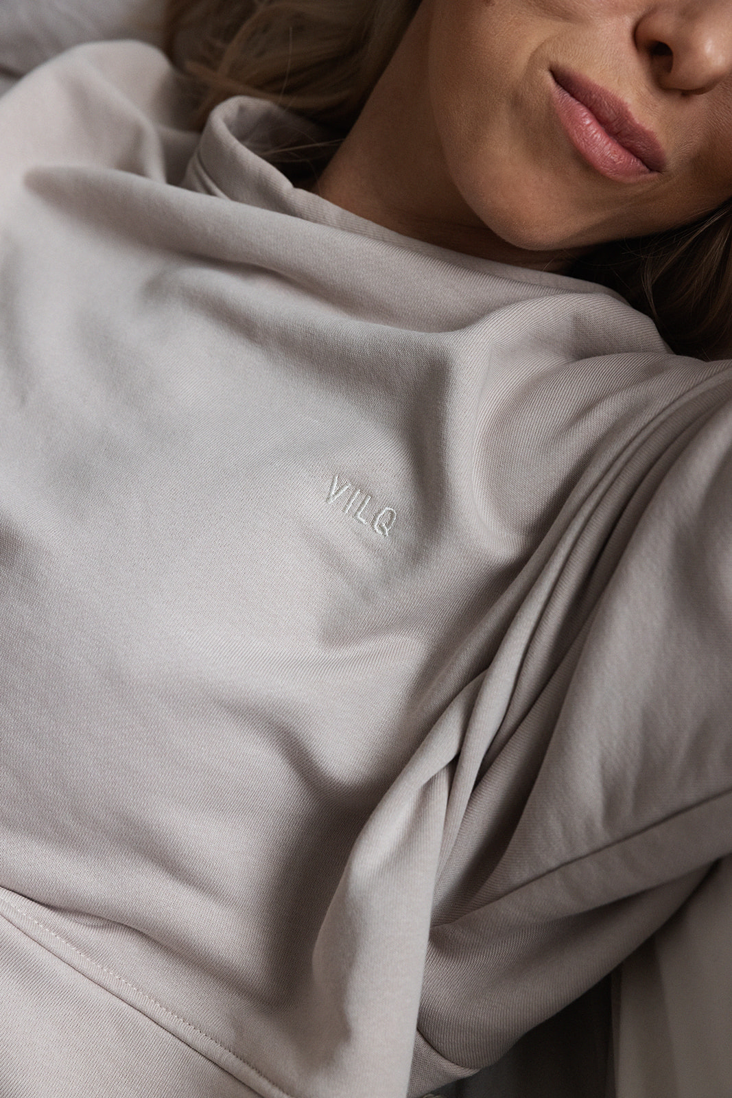 Oversizowy komplet dresowy. Dół z wysokim stanem. Góra z lekko obniżoną linią ramion. Piękny beżowy kolor z kolekcji jesień/zima 24. Onesize.