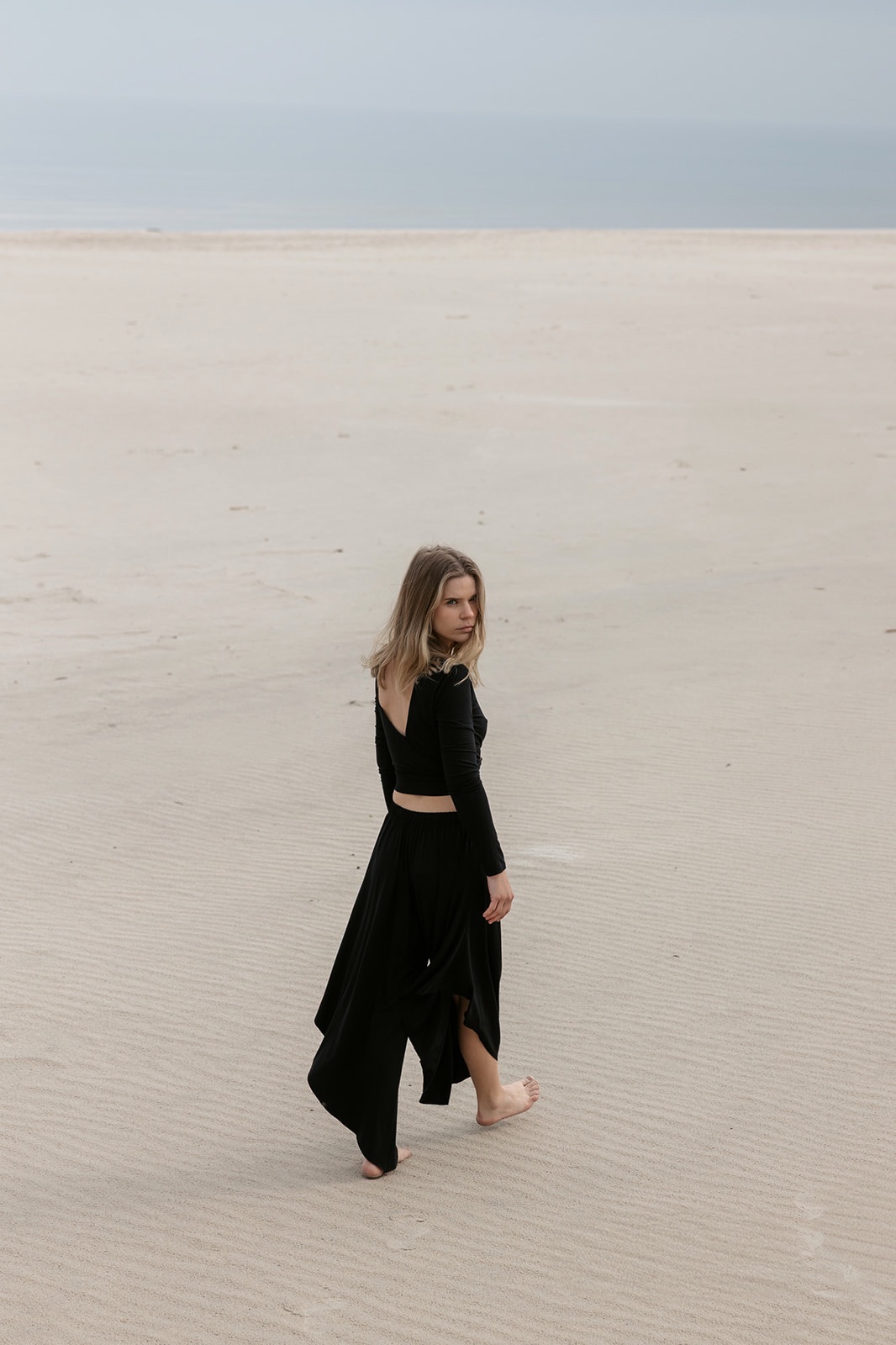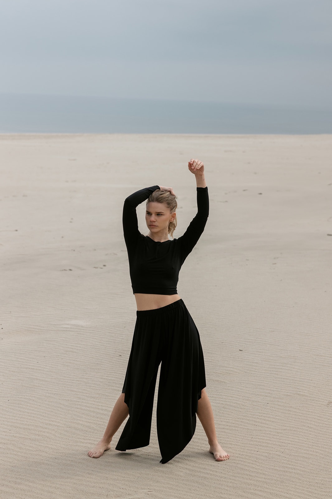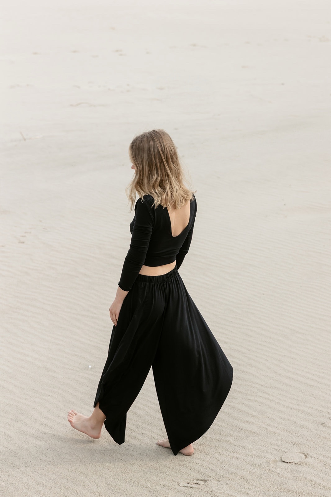 Kultowe, asymetryczne spodnie. Pięknie układają się w ruchu, optycznie wydłuzając nogi. Są idealne na