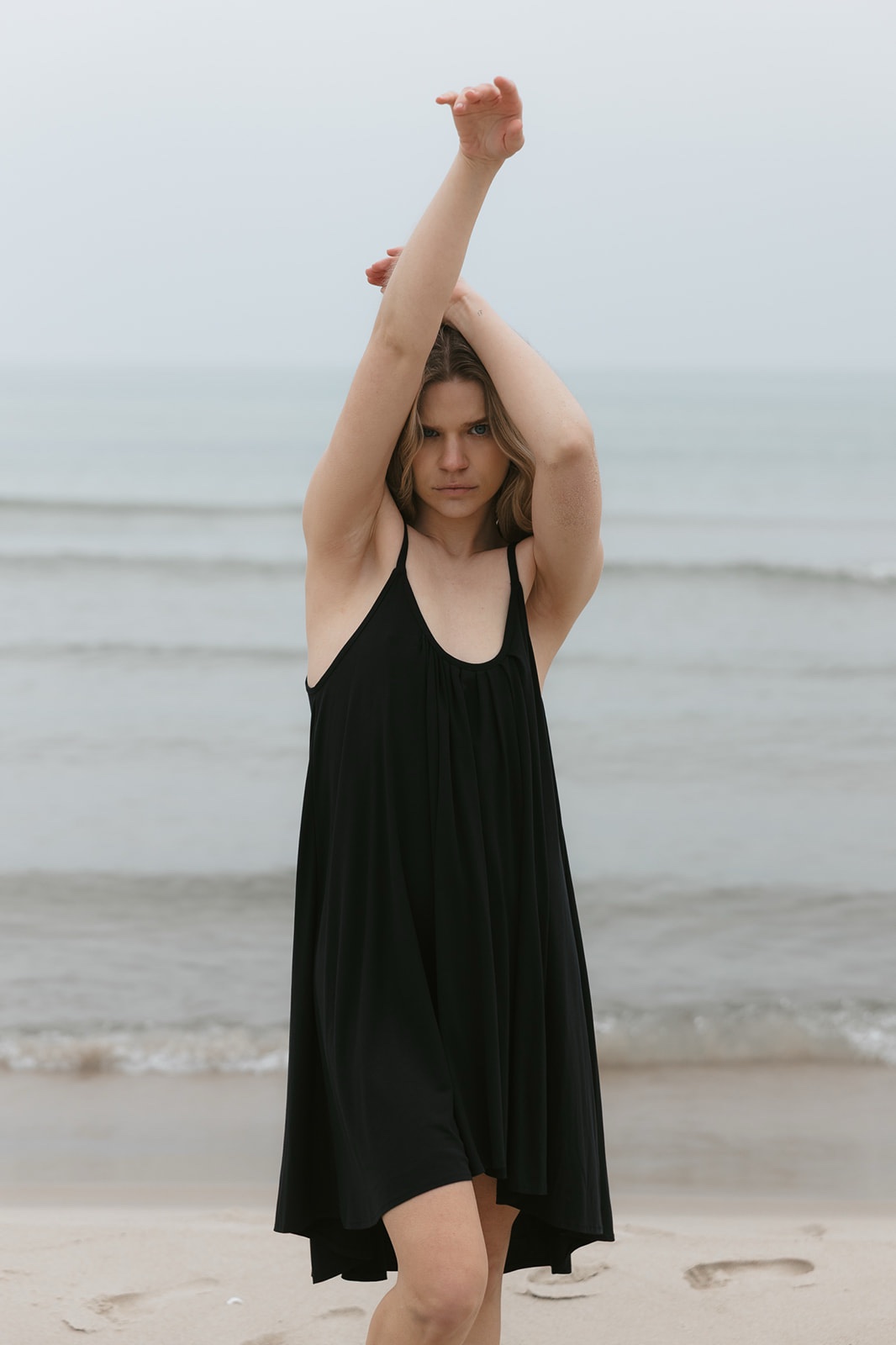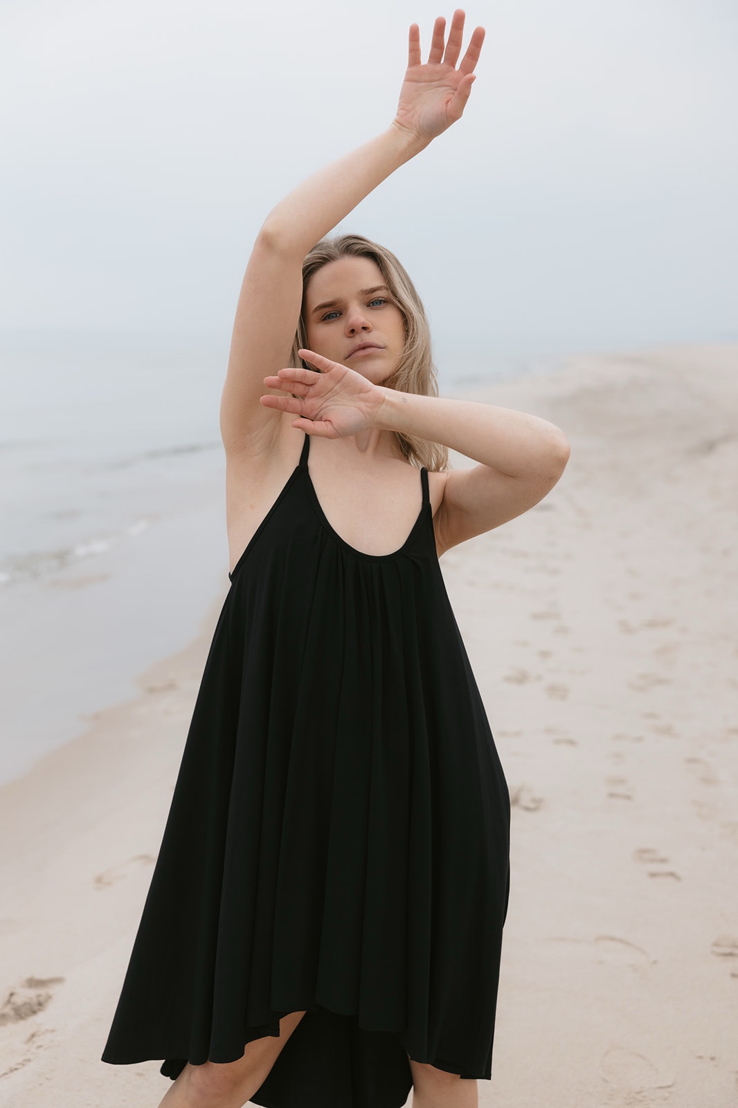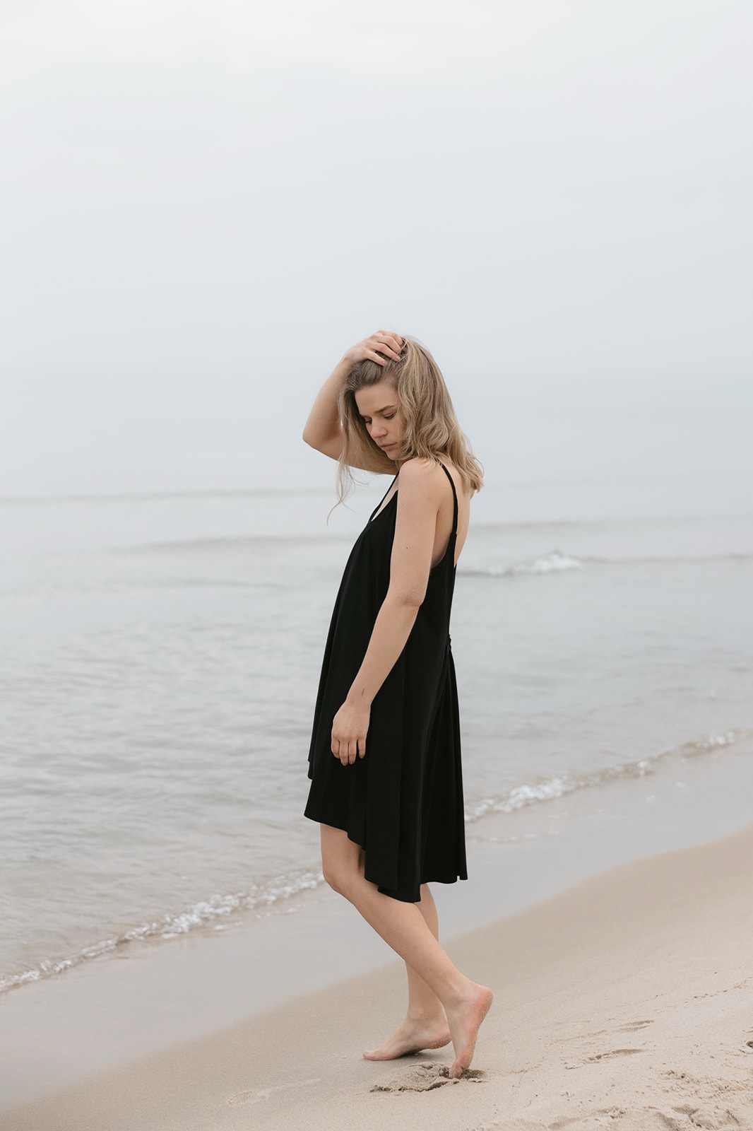 Minimalistyczna sukienka na cienkich ramiączkach.